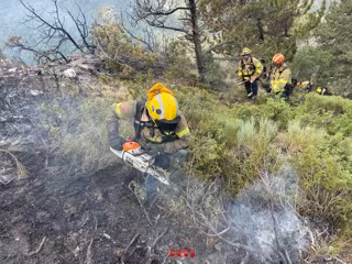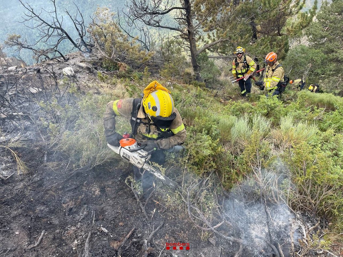 A primera hora de la tarda d'aquest diumenge, els Bombers de la Generalitat treballen amb eines manuals en el flanc esquerre de l'incendi, informen via X.
