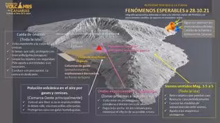 En aquest sentit, s'exposa que de les colades més actives una es troba a 84 metres de la costa i avana sobre terreny que no estava afectat prviament, si bé totes discorren per la zona d'exclusió. Actualment, el Pevolca descarta la possibilitat d'afecció de la colada a Puerto Naos.
