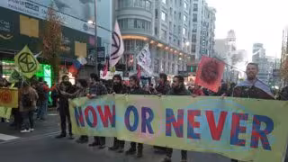 Un grup de manifestants, convocats per la plataforma Extintion Rebellion, han tallat la Gran Via de Madrid a l'alada de Callao per exigir als governs i organitzacions que assisteixen a la Cimera del Clima (COP25) a la capital que prenguin "accions efectives" davant la urgncia climtica.