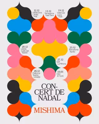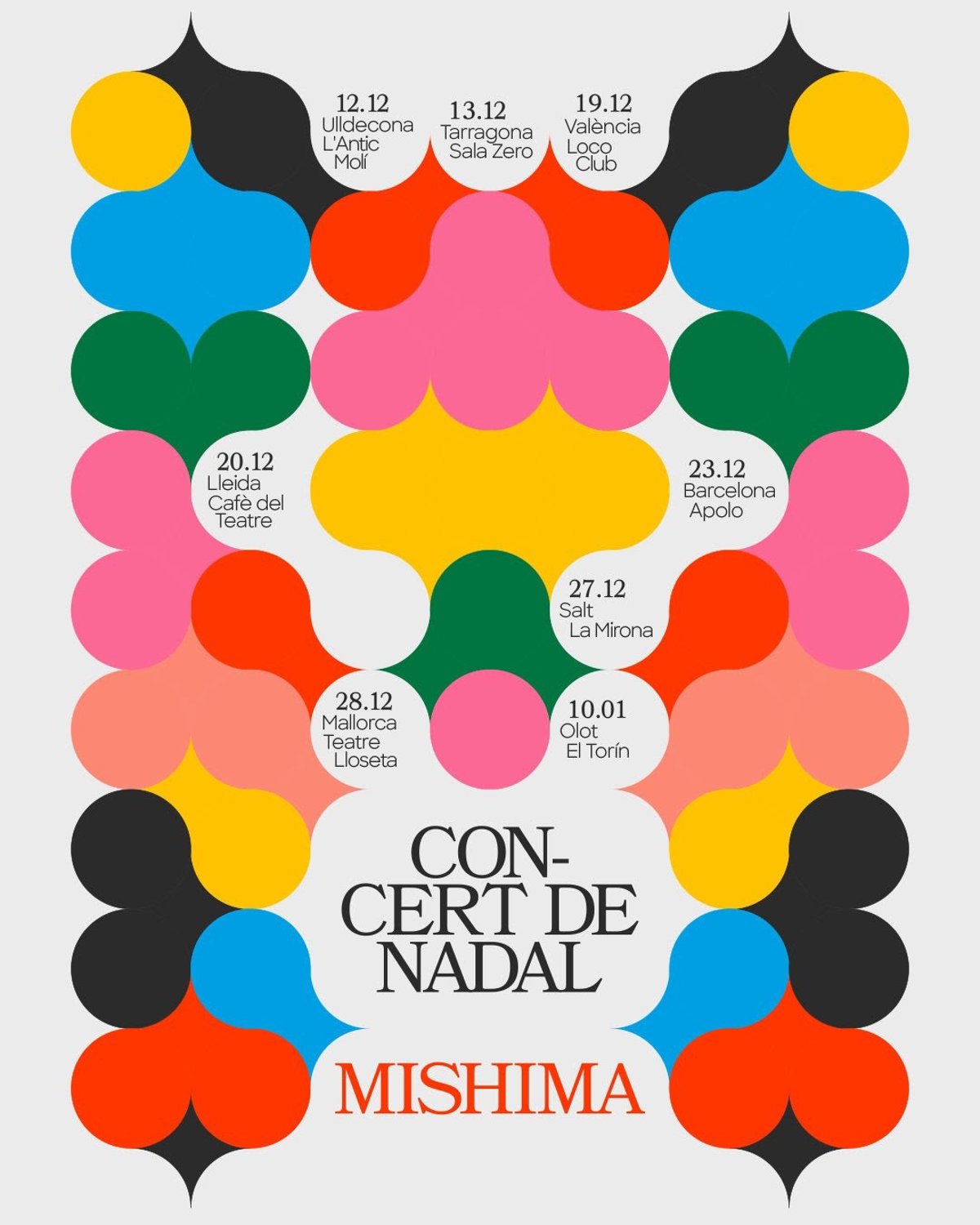 La banda barcelonina Mishima ha anunciat set concerts per Nadal --cinc a Catalunya, un a València i un altre a les Balears-- i un "per primera vegada" per Reis, informa en un comunicat aquest dimecres.