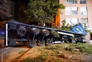 Després de la collisió múltiple, el camió s'ha quedat encastat contra un edifici residencial al carrer Cos-Gayón, segons ha informat l'Ajuntament de Lleida en un comunicat.