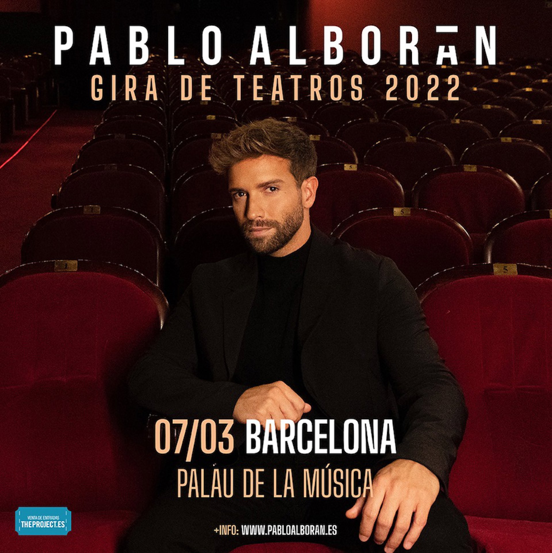 El cantant malagueny Pablo Alborán actuar el dilluns 7 de mar del 2022 al Palau de la Música, a Barcelona, ha informat la promotora The Project en un comunicat aquest divendres.