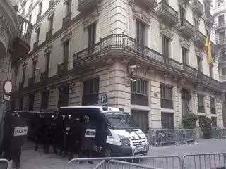 L'edifici continua custodiat als laterals per una línia policial formada per Mossos d'Esquadra i Policia Nacional, que ha rebut l'impacte d'ous, ampolles de plstic i llaunes buides.