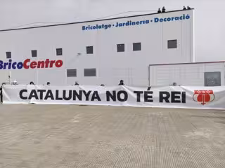 Un grup de manifestants ha penjat aquest divendres una pancarta amb el lema 'Catalunya no té rei' a l'entrada principal de la seu de Seat a Martorell (Barcelona) per protestar contra la visita del rei Felip VI, acompanyat del president del Govern central, Pedro Sánchez.