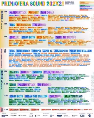 The Strokes, Tame Impala, Tyler the Creator, Nick Cave & the Bad Seeds, Pavement, Massive Attack, Jorja Smith, The National, Bikini Kill, King Gizzard & the Lizard Wizard i Beck encapalaran el primer cap de setmana, del 2 al 4 de juny, ha informat el festival.