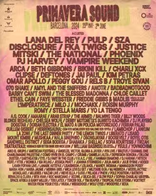 El Primavera Sound 2024, que se celebrar del 29 de maig al 2 de juny al Parc del Frum de Barcelona, tindr en cartell Lana del Rey, Pulp, Mitski, SZA, PJ Harvey, The National, Bikini Kill, FKA Twigs, Justice i Deftones com els principals reclams.