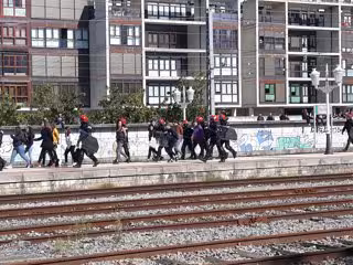 Cap a les 12.50 hores, un centenar de joves que participava en una manifestació en contra de la sentncia del procés i que reclamaven la independncia, han envat les vies del tren, a l'altura de l'estació de Renfe de la capital alabesa, situada al costat del campus de la UPV/EHU.