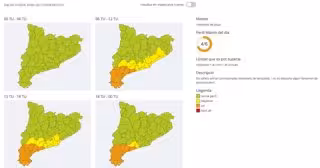 També es poden superar els 20 litres per metre quadrat en mitja hora en Ribera d'Ebre, Priorat, Baix Camp i Tarragons, i amb menor probabilitat en la resta del litoral i prelitoral.