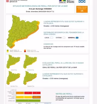 Els episodis més intensos es contemplen a partir de les 12 hores amb onades superiors als 2,5 metres i la direcció de l'onatge serà de component sud, i també hi haurà mar de fons "notable", segons una publicació a X recollida per Europa Press.