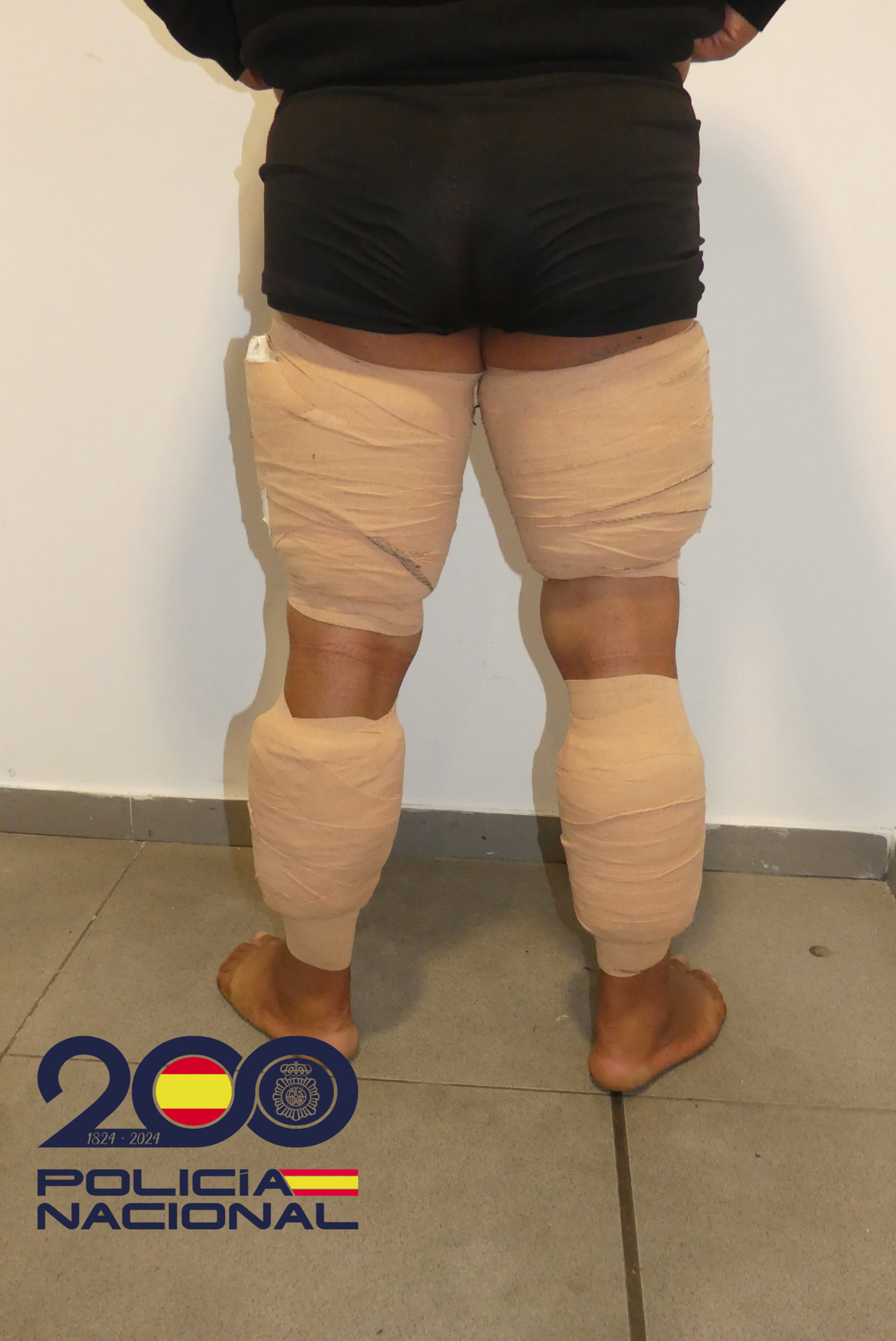 Pocs dies després, en un altre control, agents de la Policia Nacional van observar dos ciutadans sospitosos de dur substancies estupefaents entre les seves pertinences i, en fer-los un escorcoll superficial, van descobrir que tenien cocana adossada a les cames amb cinta allant.