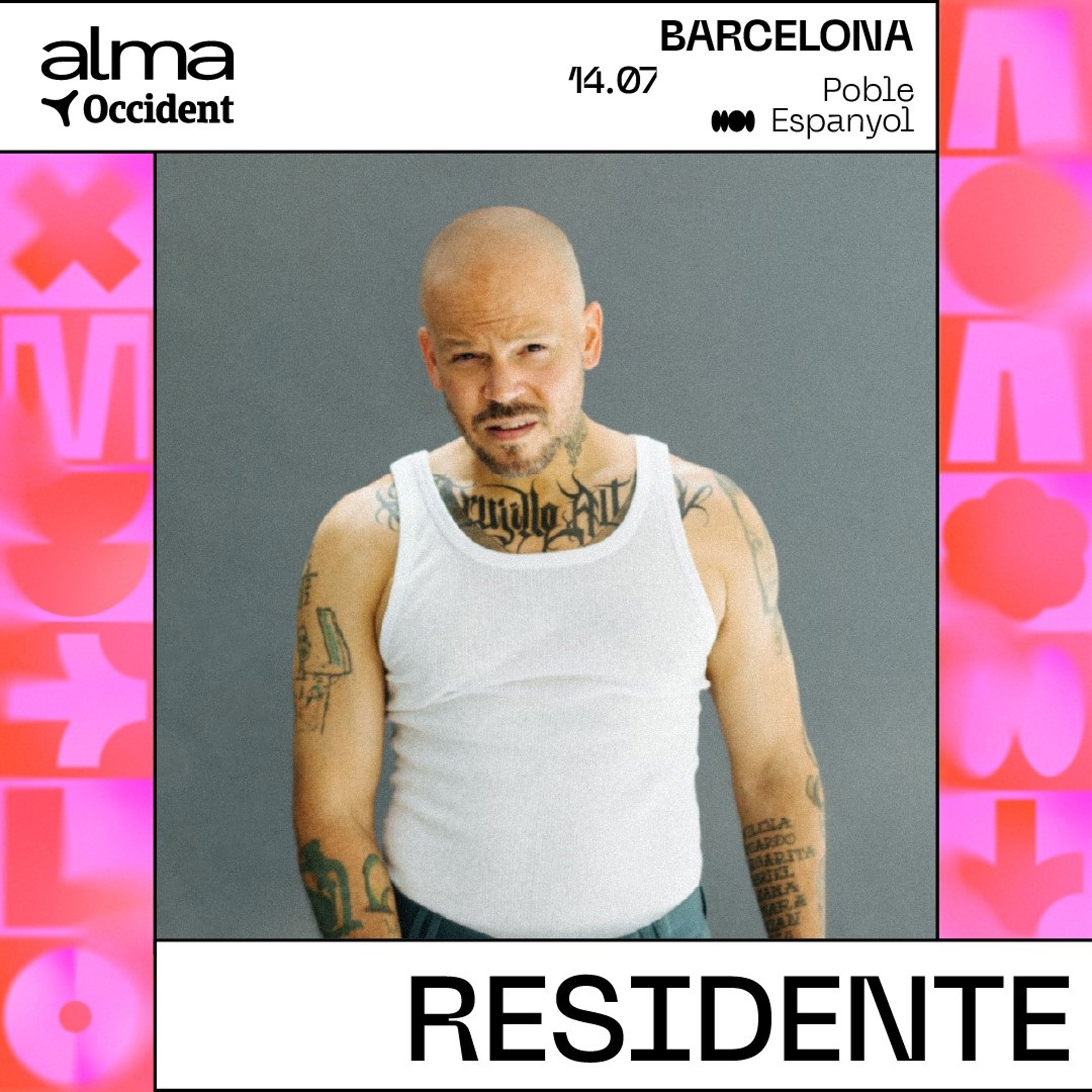 L'artista porto-riqueny René, més conegut com Residente, actuar el 14 de juliol del 2025 al Poble Espanyol de Barcelona en el marc del festival Alma Occident, que se celebra del 24 de juliol al 23 de juliol.