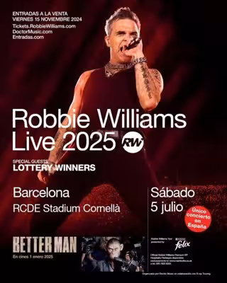 Les entrades per al concert es posaran a la venda a partir d'aquest divendres i, sobre la gira, Robbie Williams ha assegurat que "serà la més atrevida fins avui" i que comptarà amb cançons de la seva pel·lícula biogràfica musical 'Better Man'.