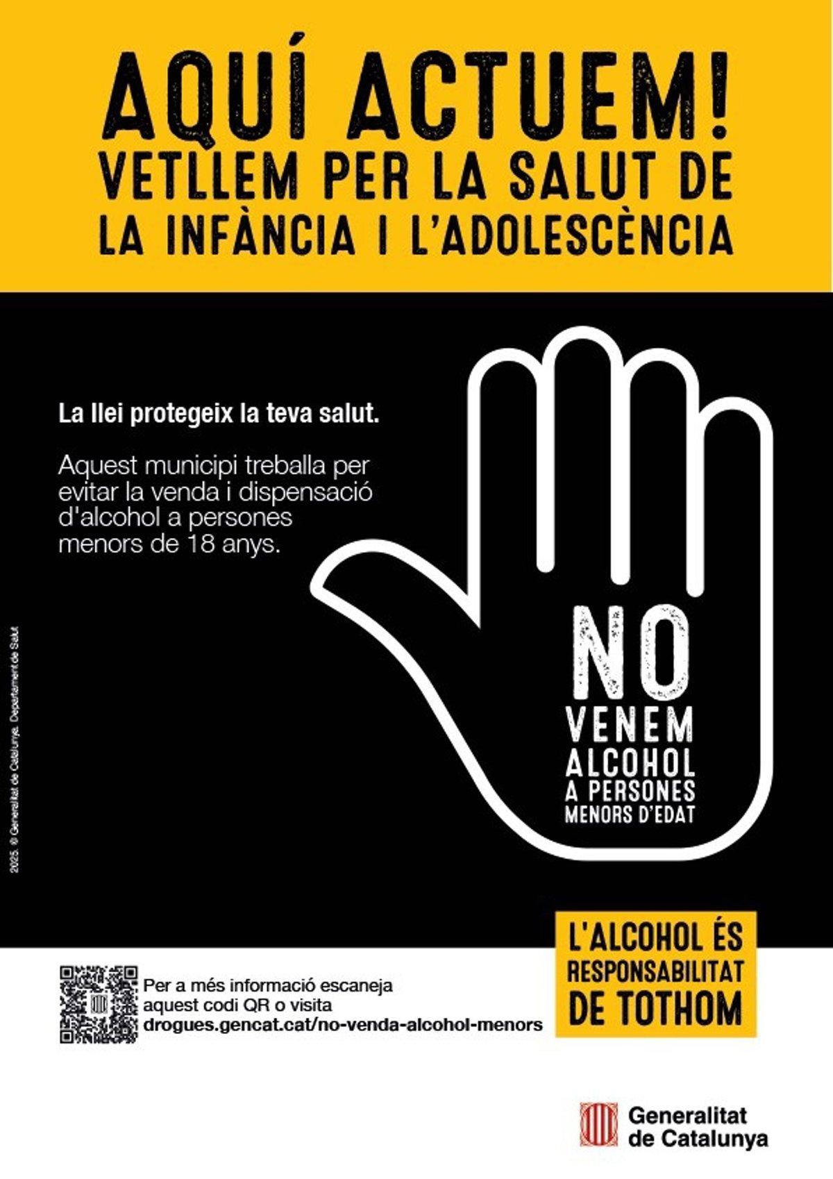 La Conselleria de Salut de la Generalitat, a través de la Subdirecció General d'Addiccions, VIH, ITS i Hepatitis Víriques (SGAVIHV) de Salut Pública, ha impulsat una acció sobre la importància de no vendre ni facilitar alcohol als menors d'edat, amb motiu del Dia mundial sense alcohol el 15 de novembre.