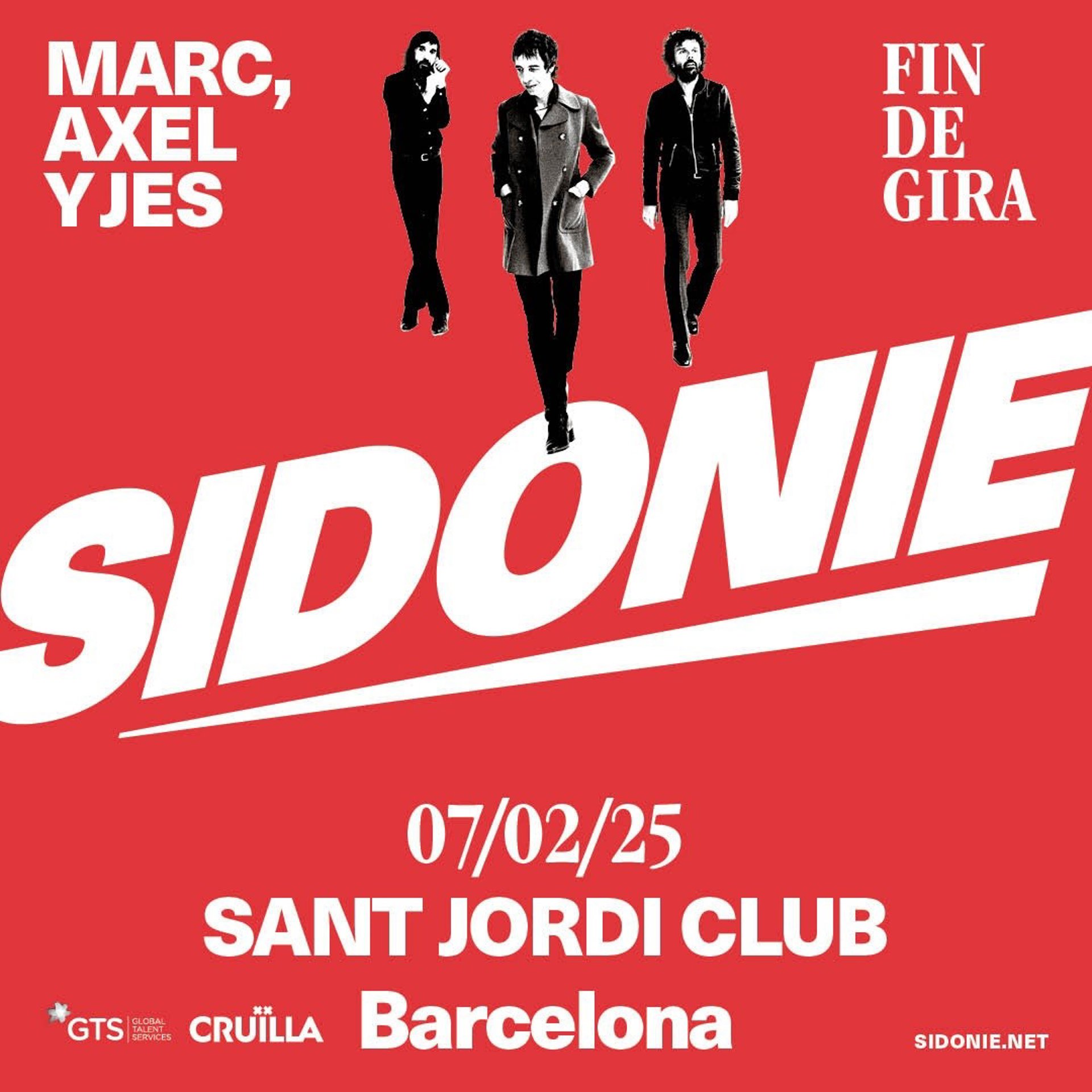 El grup barceloní Sidonie far dos concerts a Barcelona en el tram final de la gira de presentació de l'lbum 'Marc, Axel y Jes': el 6 de febrer a la sala Heliogbal i el 7 al Sant Jordi Club.