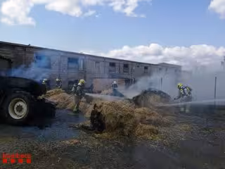 S'han desplaat fins a la zona de l'incident set dotacions terrestres i un mitj aeri, i al voltant de les 13.22 hores els Bombers han extingit el foc del tractor, per encara "estan acabant els treballs d'extinció dels blocs de palla".