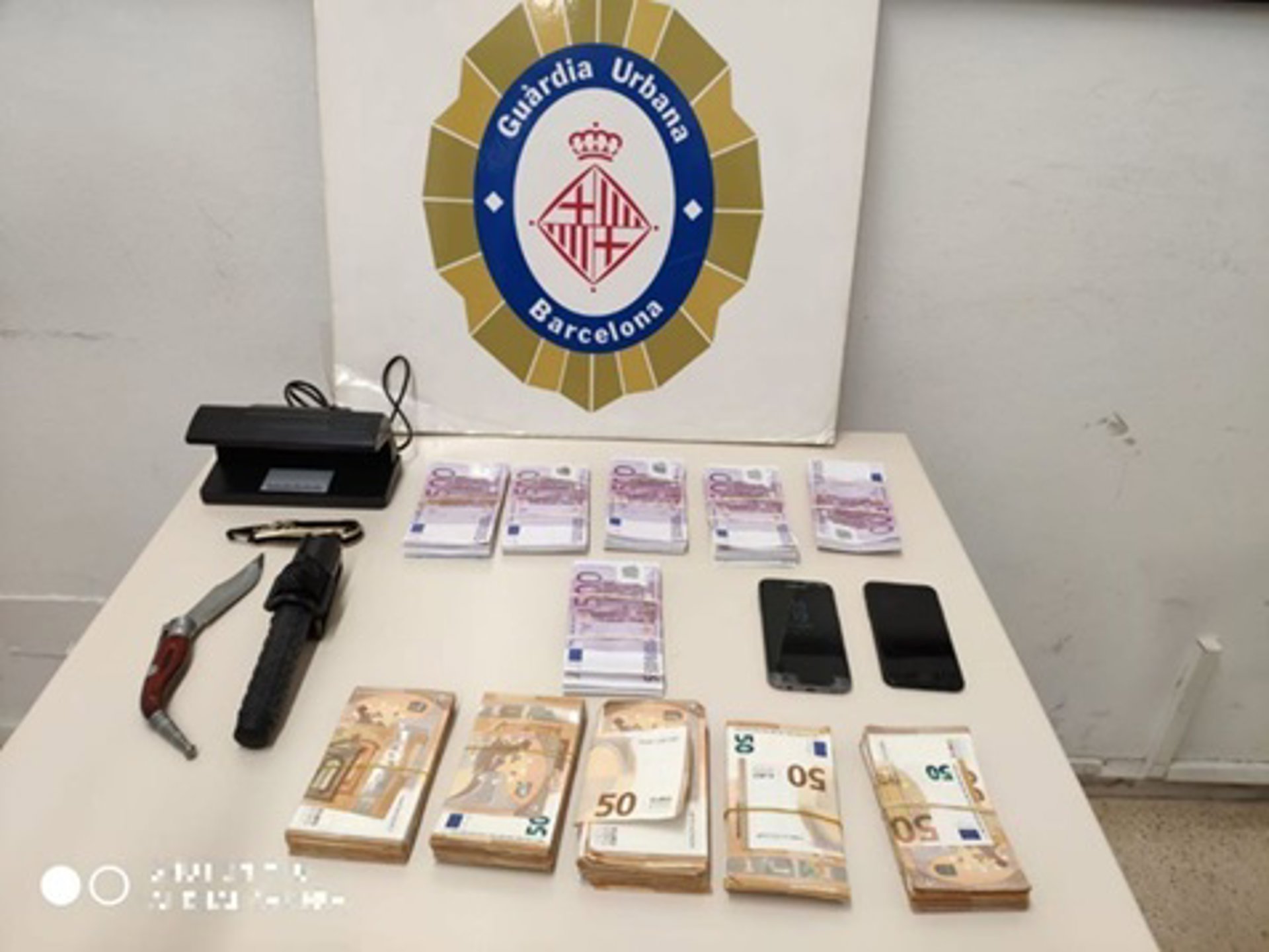 La Gurdia Urbana va arrestar els dos primers per presumpta temptativa de segrest i lesions, el tercer per suposada estafa, i els va intervenir els 181.000 euros --153.500 en 307 bitllets de 500 presumptament falsificats--, una defensa extensible, dues armes blanques, una llanterna detectora de bitllets i quatre mbils.