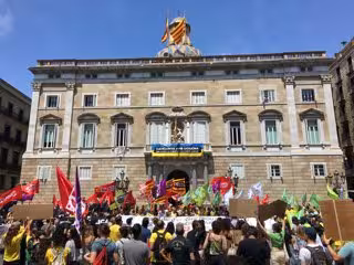 En arribar a la plaça Sant Jaume, els manifestants han corejat càntics a favor de la dimissió i la destitució del conseller d'Educació de la Generalitat, Josep Gonzàlez-Cambray, i per demanar que el president Pere Aragonès baixés a la plaça.