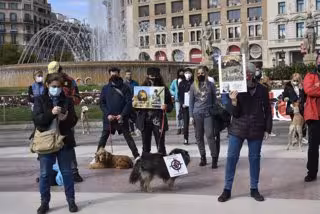 Unes 150 persones s'han concentrat aquest diumenge a la plaa Catalunya a Barcelona per manifestar-se pels drets dels animals i contra la caa.