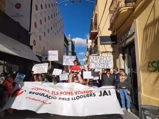 La manifestació, sota el lema 'Contra els fons voltors. Regulació dels lloguers ja!', ha criticat les "prctiques especulatives del fons voltor Azora" i ha reclamat al Govern central que reguli els lloguers.