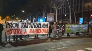 La Gurdia Urbana de Barcelona ha xifrat en unes 30 les persones que han tallat el trnsit entre les 18 i les 19 hores d'aquest diumenge a la Gran Via al seu pas pel carrer Llan per protestar contra la Papanoelada Motera, mentre que l'entitat venal Eixample Respira ha dit que en són un centenar.