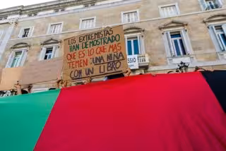 Enmig de la plaa han situat una pancarta de color lila amb el lema: 'Contra la guerra i l'integrisme pels drets de les dones de l'Afganistan' i han alat banderes del país, i alguns dels concentrats porten cartells de 'No les deixem soles' o 'Els extremistes han demostrat que és el que mes temen: una nena amb un llibre'.
