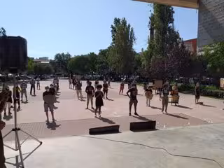 Una altra oradora ha dit: "Estem aquí per denunciar el racisme institucional, per denunciar tot acte que violente vides negres i racializadas. Estem aquí per condemnar l'abús policial i dir que no passaran".