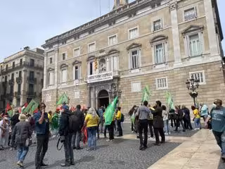 Unes 80 persones, segons xifres de la Gurdia Urbana de Barcelona, s'han concentrat aquest dissabte al migdia a la plaa Sant Jaume de la ciutat i han envoltat l'edifici de la Generalitat contra la reversió de les retallades en educació.