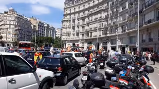 Des de la plaa Francesc Maci fins a la Delegació del Govern central, porten banderes espanyoles com a capes o onejant per les finestres dels vehicles, a més de fer sonar les seves botzines, reproduir música militar i l'himne espanyol, i cridar proclames, com 'País socialista, país tercermundista', mentre els han aplaudit alguns vianants des de les voreres.