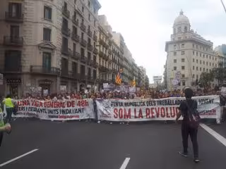 Amb les pancartes 'Per la república dels treballadors i el jovent. Som la revolució!' i 'Per una vaga general de 48 hores', els manifestants han corejat consignes com 'Els carrers seran sempre nostres', 'Llibertat preses polítiques', 'Si no hi ha justícia, no fem classe', 'Aix no és justícia, és una venjana', '1-O ni oblit ni perdó' i crits d'independncia i a favor d'una vaga general.