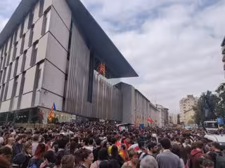 Els concentrats també han cridat consignes com 'Fora la bandera espanyola' i 'Presos polítics, llibertat'.