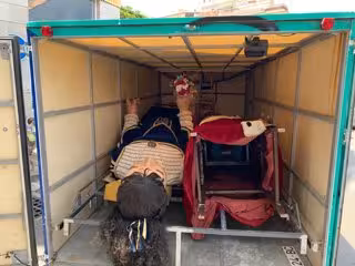 El remolc, de més de 5 metres amb dibuixos dels gegants i capgrossos de la població, transportava la parella, que es diuen Salvador i Teresa, i l'alcalde ha demanat que els deixin en el millor estat possible.