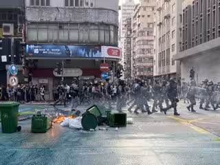 Testimonis dels incidents han informat d'un enorme incendi a l'avinguda Waterloo i de mútiples barricades prop de l'estació de Yau Dt. Tei, l'avinguda Nathan -- on ha actuat el canó d'aigua -- i Kowloon, segons el 'South China Morning Post'.