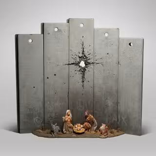 L'artista britnic Banksy ha installat un pessebre en qu la família de Jesús de Natzaret apareix en una representació tradicional, per en lloc d'en un estable est davant de diverses peces de formigó com les que es van fer servir per a la construcció del mur israeli de Cisjordnia. L'estel sobre el naixement és un forat en el mur provocat per l'impacte d'un projectil.