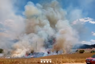 Els Bombers de la Generalitat treballen aquest dimarts amb 41 efectius en l'incendi en un camp de Tudela de Segre (Lleida), després d'haver rebut l'avís a les 12.37 hores.