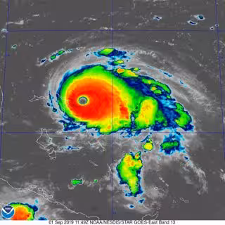 El Centre Nacional d'Huracans (CNH), amb seu a Miami, ha indicat que l'hurac Dorian va tocar terra a les illes Abaco, com un hurac de categoria 5 amb vents mxims sostinguts de 295 quilmetres per hora.