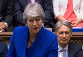 May ha estat rebuda amb víctors per part del banc dels conservadors, una escena radicalment diferent a les viscudes mesos enrere en el marc de les seves tres temptatives per aconseguir que es donés llum verda a l'acord del Brexit negociat pel seu Govern i la UE, quan va ser esbroncada per alguns 'tories'.