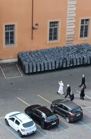 El Papa entra en el Palau del Sant Ofici, abans del seu primer Regina Caeli. - EUROPA PRESS